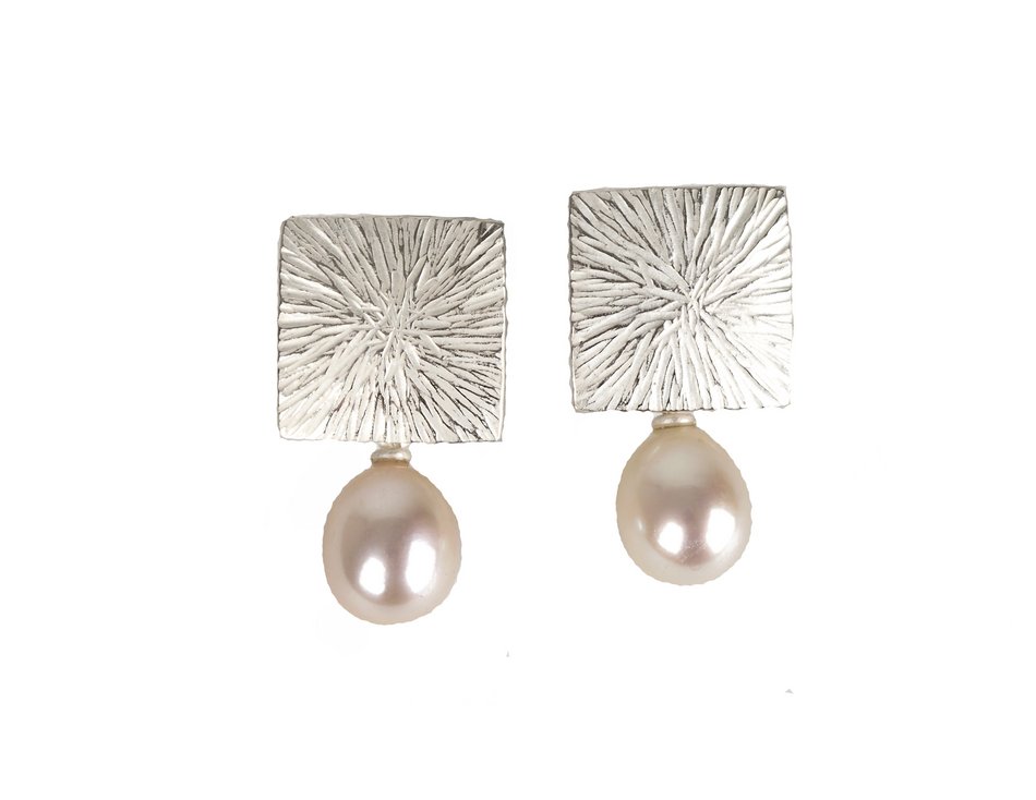 Strukturierte Ohrschmuck aus Silber mit Perltropfen